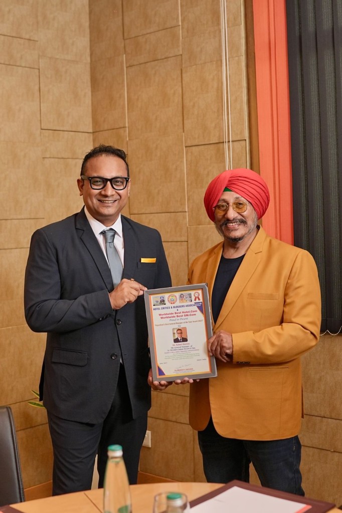 In recognition of his visionary leadership, commitment to service excellence, and transformative management that elevated Le Meridien Jaipur Resort & Spa to one of Rajasthan’s most admired hospitality destinations. Mr. Sharma’s focus on guest satisfaction, staff empowerment, and innovation has earned him this prestigious title, presented by Mr. Tajinder P. Grover.